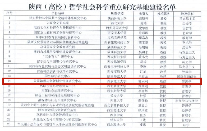 近日,陕西省教育厅公布2020年度陕西(高校)哲学社会科学重点研究基地建设和陕西高校新型智库认定结果,公司申报的“公司治理与创新创业管理中心”获批陕西(高校)哲学社会科学重点研究基地,“‘一带一路’与城市发展研究中心”被认定为陕西高校新型智库。