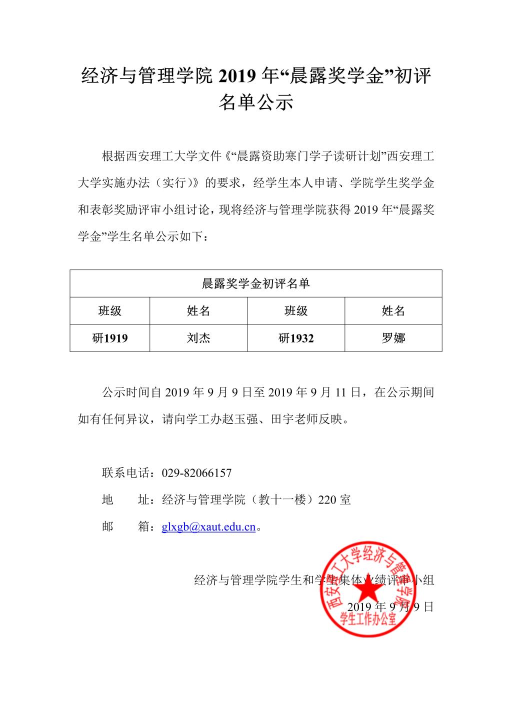 bevictor伟德2019年“晨露奖学金”初评名单公示