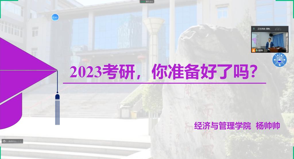 3月31日,bevictor伟德于11-319举办2023届考研专题讲座,讲座线下线上结合的方式进行。讲座邀请到公司技术经济及管理专业研究生杨帅帅主讲,2019级及部分低年级员工参加。