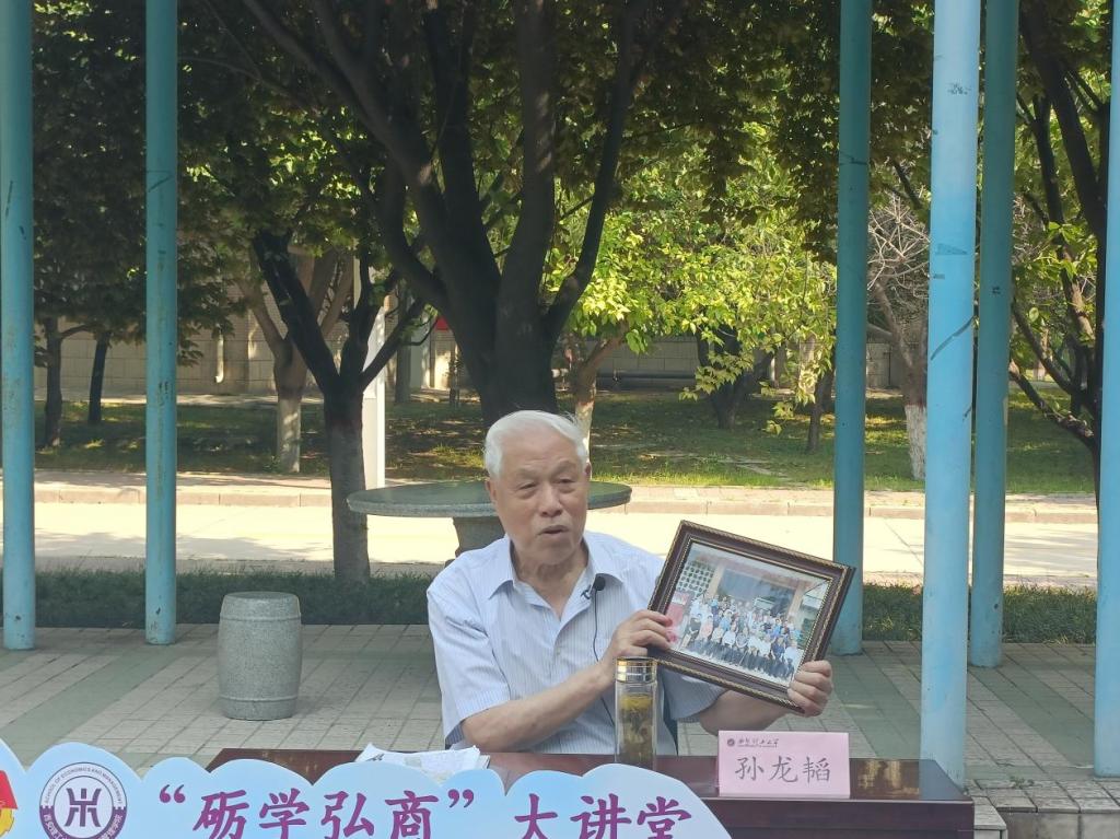 孙老师首先向展示了“陕机院工经系79 0203班40年”合影,讲述优秀员工在国家建设各个领域的发展与成就。并以“弘商”为切入点,结合公司历史,讲述经管公司办学以来的优良传统。从北京机械公司的优秀学子到如今学霸宿舍六朵金花全部上岸,孙老师以一代又一代公司的优秀员工作为榜样,不负时代,不负韶华,激励经管学子不断向前。孙老师引用《钢铁是怎样炼成的》中的名言勉励青年,不应虚度年华,如今我们正处在一个新时代,每一天都应有意义的度过,做到有理想、有责任、有担当、有能力。把握正确的方向,脚踏实地,培养自身的能力,充实地度过这四年的老员工活。