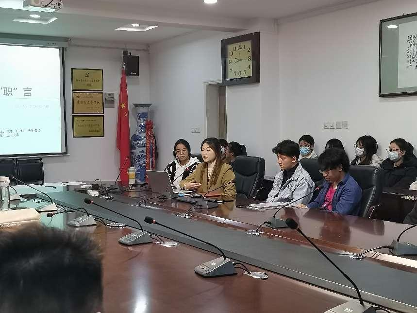刘凯主要针对信息渠道、面试经典问题、营销理论及面试经历进行分享,他结合自身的失败面试经历,从他切身体会让同学们意识到焦虑存在的同时,更要保持积极乐观的心态;胡艳丽从非技术岗位的类别、如何选择非技术岗位、人力岗位的细化介绍、面试绝招四方面分享自己的就业经验;蒲欣鑫针对在座的大三同学,重点讲解面试过程中的基础知识,包括简历的制作、测评的准备及如何区分公司竞争力等重点内容。