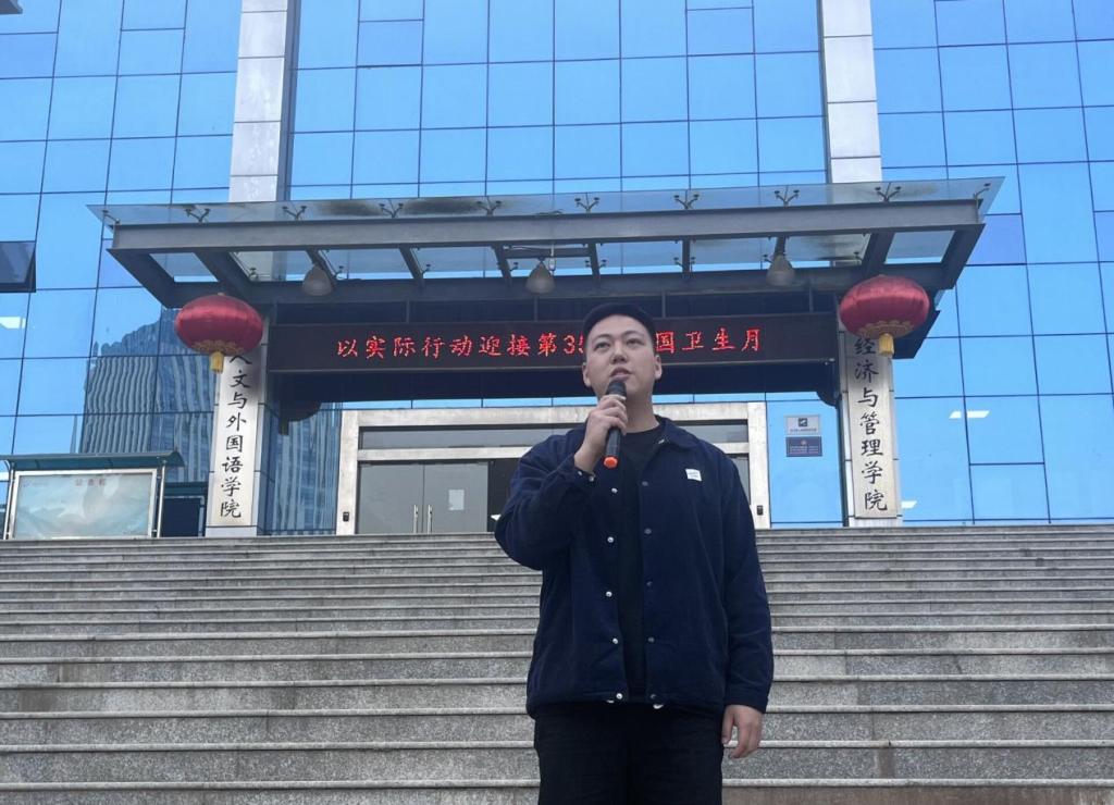 任程宇和杨沛锦依次面向全体方阵志愿者进行动员讲话。他们分别从展现青春风貌、发扬体育精神、保障个人安全三个方面向与会同学提出要求。此次运动会是阔别两年的一次盛会,是展现经管学子良好精神面貌的平台,希望同学们充分发扬不畏困难、永不言败的精神,在保证安全的情况下,继续保持以往公司在运动会中的精神面貌,在展现出经管公司的水平和风采。