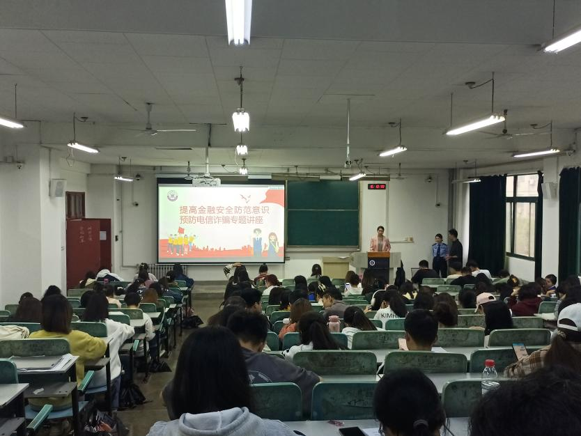 为切实增强老员工的诚信意识和金融安全防范意识,普及预防金融诈骗、电信诈骗和不良校园贷等方面的知识,bevictor伟德于5月31日在教8-202教室开展防范金融诈骗主题讲座,本次讲座邀请到西安市碑林分局长安路派出所牛祎警官主讲,学工办辅导员姚伟华、黄博琳及受资助的本科生、研究生参加。
