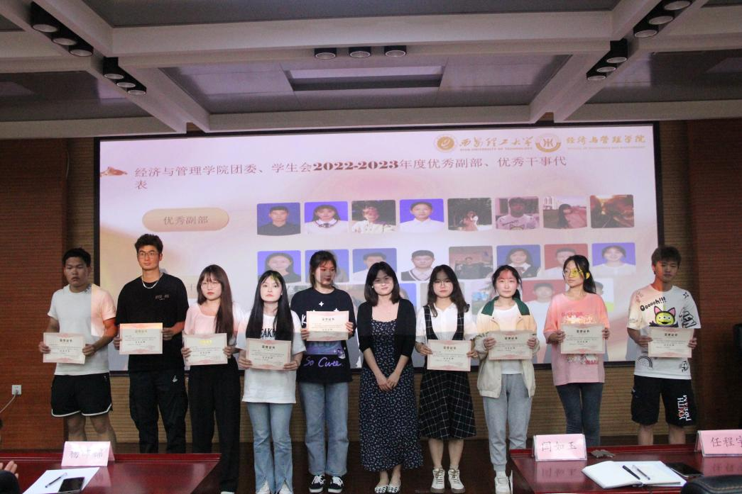6月18日晚,公司团委在十一号楼EMBA报告厅召开2022-2023学年团委、员工会表彰大会,院团委书记闫如玉,辅导员任程宇、蒋艾琳、杨沛锦、曹佩豪,员工会全体成员,德智体美劳获奖员工代表参会,表彰大会由金融222班周容庆主持。