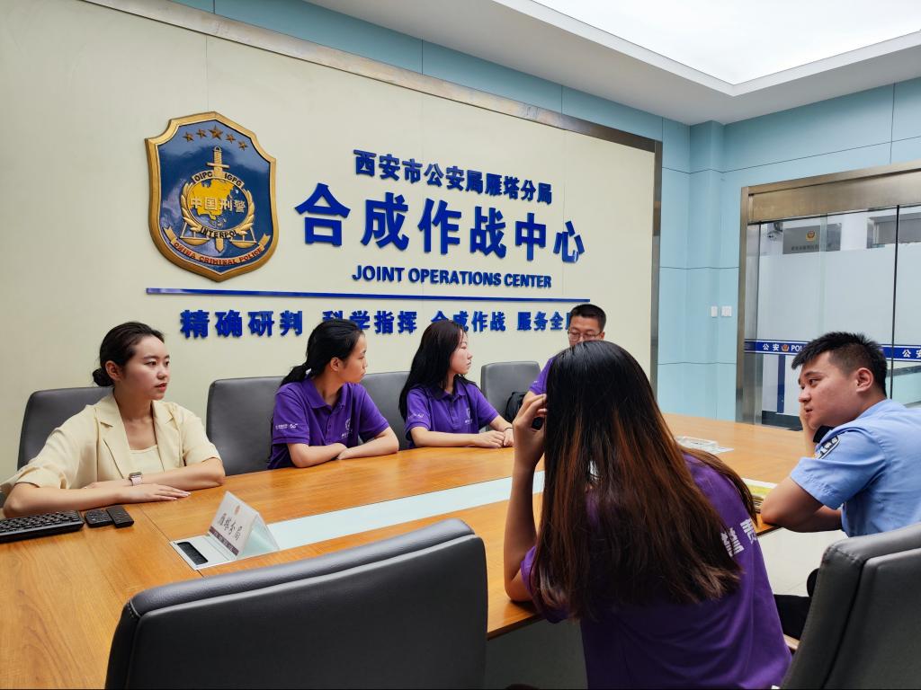 为深入贯彻落实习近平总书记重要指示精神和党中央决策部署,贯彻落实中办、国办印发的《关于加强打击治理电信网络诈骗违法犯罪工作的意见》,进一步宣传电信网络诈骗防范相关工作,筑牢防范电信网络诈骗防线。2023年7月14日,伟德官方网站“平安中国·反诈先锋”社会实践队分别前往雁塔区反诈骗中心、公安新城分局胡家庙派出所参加交流座谈会,实践队全体队员及指导老师黄博琳参会。
