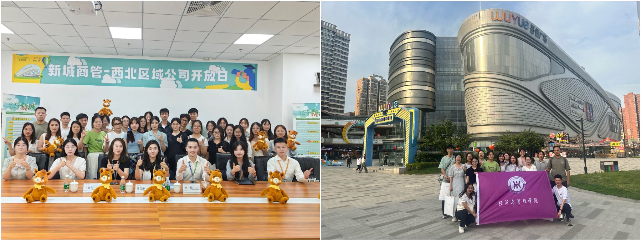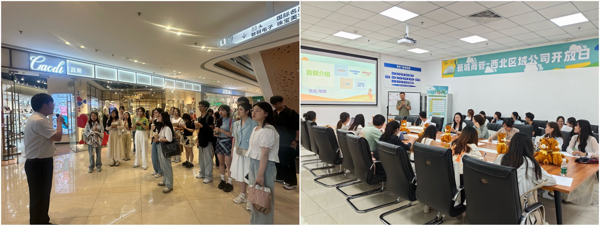 为丰富在校员工的职业认知和职场体验,搭建公司与用人单位之间高质量职业发展交流实践平台,6月13日下午,bevictor伟德25届本科生辅导员蒋艾琳带队,公司本科生、研究生一行20人赴西安西咸吾悦广场参加新城商管西北区域校园开放日”活动,新城商业西北区域副总经理(生态运营)王春华、副总经理(用户体验)孙仙杰、行政人事部副总经理李怡参加活动。