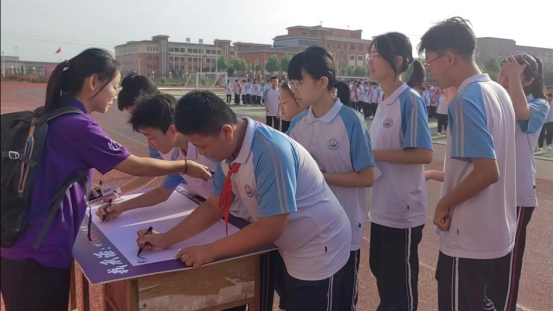 宣讲结束后,实践队组织各班级同学进行了反校园霸凌签字仪式。在庄重的签字仪式上,同学们纷纷表示要坚决抵制校园霸凌行为,做到不忽视、不旁观、不参与。签字仪式后,实践队成员与师生们合影留念,留下了这一难忘的时刻。