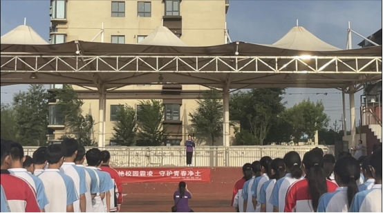 早上7时,实践队在公司操场举行了“反校园霸凌”主题宣讲会,约一千三百余名师生参加。宣讲会上,实践队队员艾淑敏详细生动地阐述了校园霸凌的定义、危害、预防及应对措施,并强调,校园霸凌不仅会对受害者造成身心伤害,还会影响家庭、校园乃至整个社会的安全稳定与和谐氛围,每个人都应该认识到校园霸凌的严重性,积极参与到反校园霸凌的行动中来。