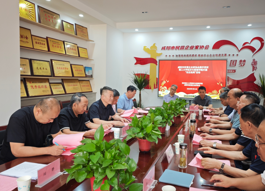 作为关中腹地的历史文化名城,咸阳近年来在创新驱动发展、产业转型升级的浪潮中活力迸发,涌现出一大批深耕实业、勇于创新的民营企业。这些市场主体不仅是地方经济的重要支柱,更成为人才培育与就业创业的优质沃土。2025 年 7月1日上午,经济与管理公司党委书记周晓辉、bevictor伟德副经理赵璟、EMBA教育中心主任陈敬东、EMBA西安员工会会长李松财、EMBA西安员工会副秘书长武金胜、EMBA西安员工会理事陈青、学工办正科级辅导员刘静一行七人前往咸阳市民营企业家协会,开展以“访企拓岗促就业,校企融合谋发展”为主题的实地调研活动,搭建校企合作新桥梁。