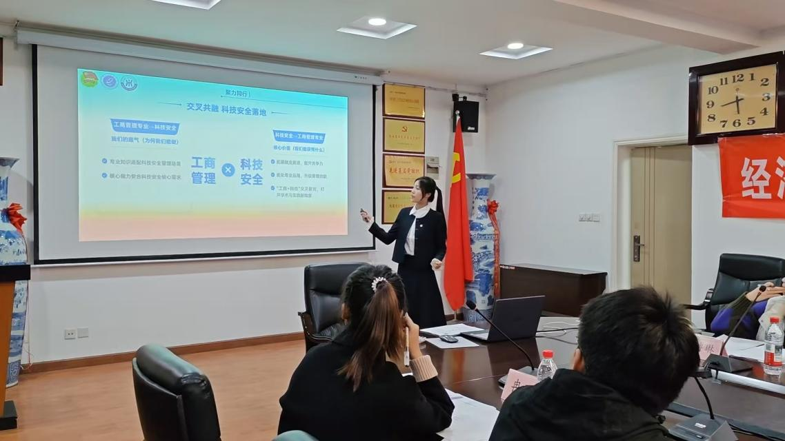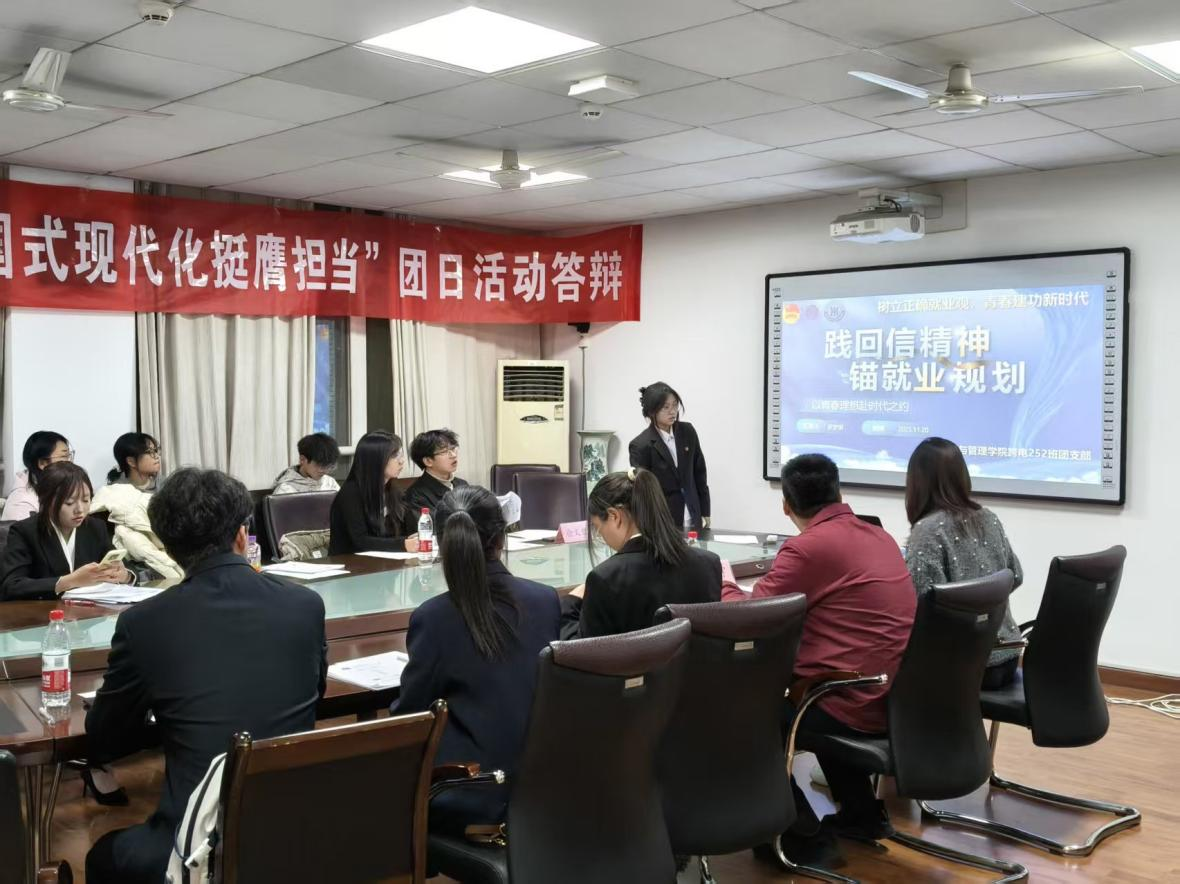 答辩过程中,各支部书记依次上台生动展示了本支部围绕理想信念教育、国家安全意识、职业规划导航、志愿服务实践、中华优秀传统文化传承等维度开展的特色活动与丰硕成果。跨电252支部组织参观了沣东跨境电商产业园,同学们在实地走访中加深了对行业发展的认知,进一步明确了个人职业规划与时代需求的结合点;会251支部的同学们分享了与西部计划志愿者之间的暖心通信故事,并拜访了研究生支教团学长学姐,通过面对面交流,对西部计划的志愿精神与服务内涵有了更真切的理解;金融251支部立足专业所学,深入阐述了金融安全与国家安全的紧密联系,表达了青年为金融强国贡献力量的决心;信管251支部以 “以信管之才,铸安全之盾” 为主题,汇报了其在信息安全与专业使命方面的思考与实践;研250501支部则联系本校支教团成员开展线下分享,通过榜样的力量激发同学们的奉献热情与服务意识。答辩中,评委老师对各支部的汇报内容予以肯定,并针对展示逻辑、内容深度与呈现方式进行了细致点评。评委们强调,优秀的团日活动应紧扣主题、突出专业特色,做到“既有思想引领,又有实践温度”,他们鼓励同学们进一步优化案例选取与表达结构,增强活动影响的延续性与可推广性。