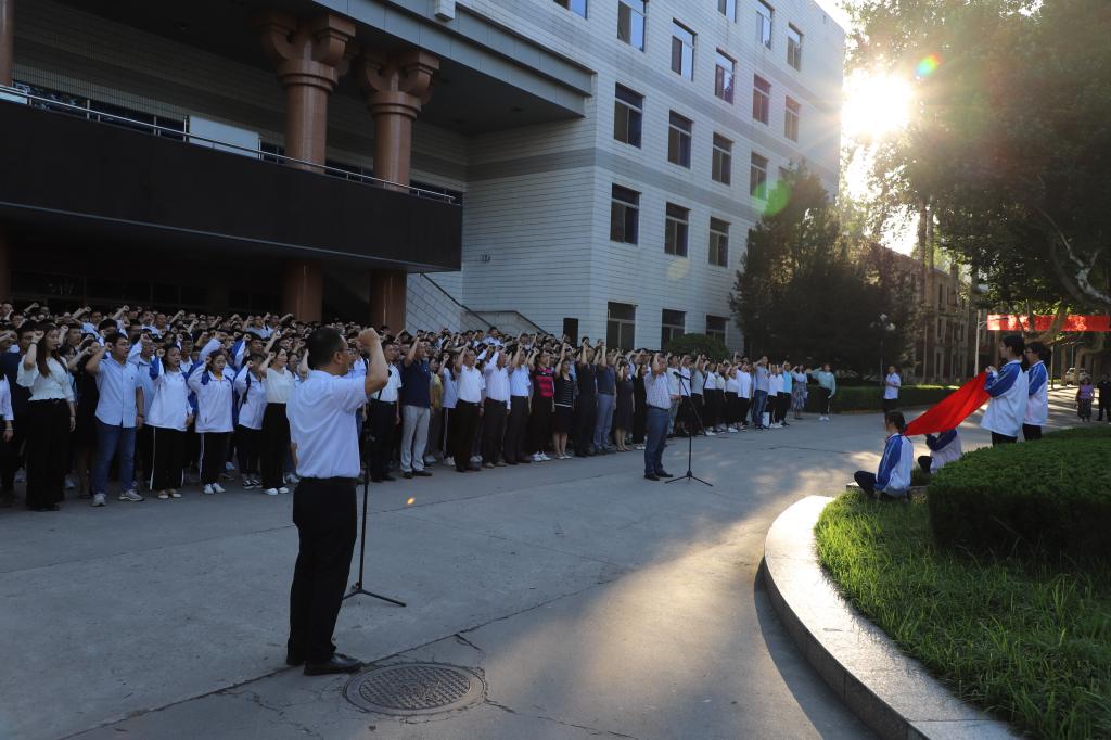 早上7时,在雄壮激昂的国歌声中,鲜艳的五星红旗冉冉升起,全体师生党员面向鲜红的党旗,举起右拳,重温入党誓词,铭记誓言,不忘初心;同唱《没有共产党就没有新中国》,更加坚定对党忠诚和为共产主义奋斗终生的决心。