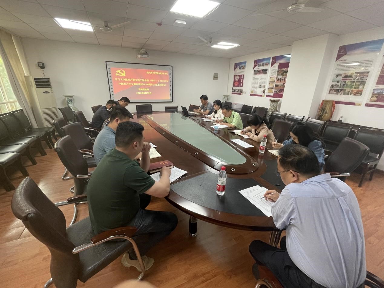 2022年5月19日,经管公司机关党支部在教11楼328会议室组织党员开展专题学习会议。全体支部成员先后认真学习了《中国共产党支部工作条例(试行)》以及习近平主持中共中央政治局常务委员会会议分析当前新冠肺炎疫情防控形势、习近平总书记在庆祝中国共产主义青年团成立100周年大会上的讲话。