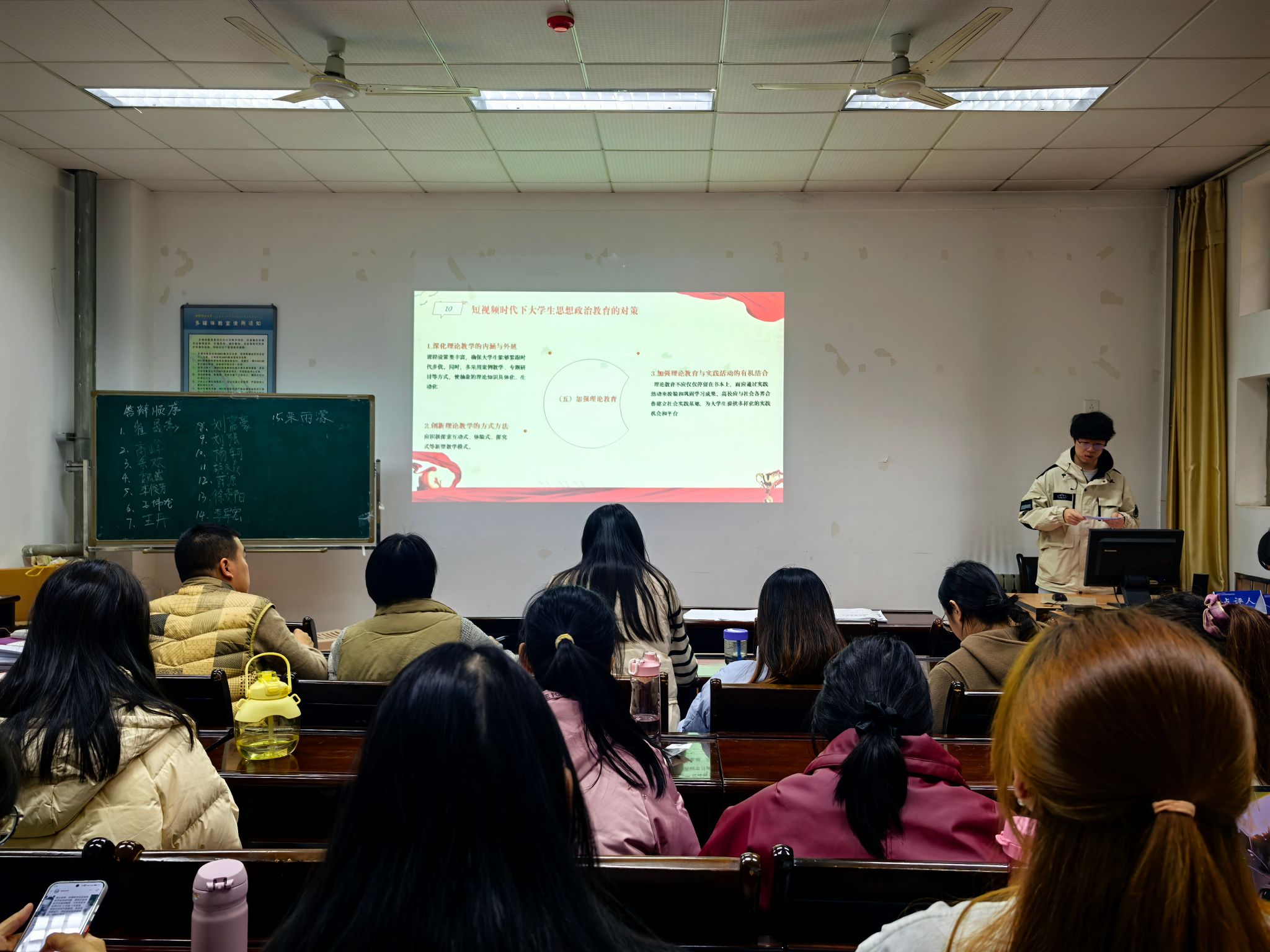 在汇报过程中,各小组代表通过PPT的形式从选题意义、调研方法、调研过程、调研成果、志愿活动参与等方面进行了汇报展示,内容涵盖了老员工兼职情况、关于红色基地的精神体会、敬老爱老、志愿服务等多个方面,调研过程扎实,结果真实可靠,尤其是部分同学前往敬老院、社区开展志愿服务活动,充分展现新时代老员工良好风貌。