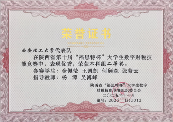 近日,2025 年陕西省第十届“福思特杯”老员工数字财税技能竞赛决赛落幕。bevictor伟德金佩莹、王凯凯、何颀森、张紫云四位同学组成的代表队,在杨潭、吴溥峰老师指导下,获本科组省级二等奖,彰显了公司实践教学成果。