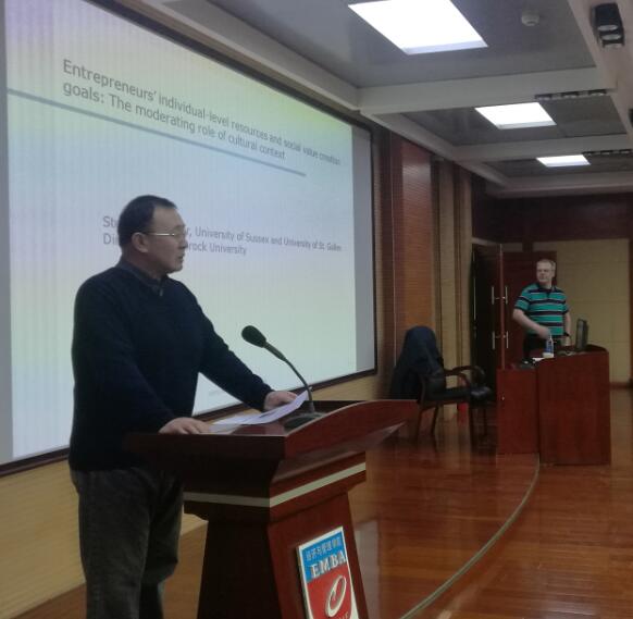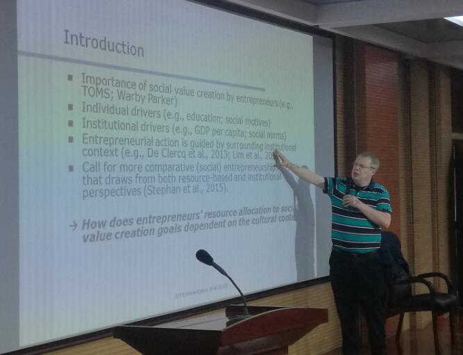 应bevictor伟德胡海青经理邀请,加拿大布鲁克大学古德曼商公司Dirk教授于2018年12月3日下午2点30分,在bevictor伟德曲江校区教11楼四楼EMBA报告厅做了题为《Entrepreneur resources,cultural context,and social value creation》的学术报告。公司部分教师、研二员工及16级—17级博士参加了本次学术报告。本次公司研究生学术报告的主题为“运用实证研究方法讨论影响社会价值创造的影响因素和路径”,报告会由杨屹老师主持。