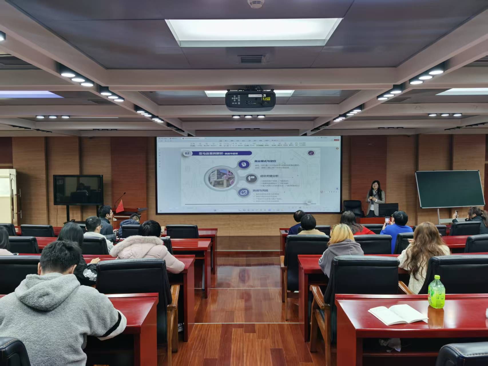 讲座中,王孟利总经理系统解析了跨境电商从“0到1”创业阶段的市场定位与品牌建设,剖析了亚马逊、SHEIN等典型案例;进而阐述了如何通过模式复制与本土化运营实现从“1到10”的规模增长,并分享了搭建敏捷供应链的实践经验;最后,她深入探讨了AI与大数据技术在选品、定价及供应链可视化等领域驱动的“效率革命”,展现了技术赋能下的行业前沿图景。在互动环节,王孟利女士与在场师生围绕跨境电商发展趋势、创业机会与实操难点等问题进行了深入交流,现场气氛热烈,师生反响积极。