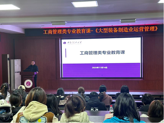 2025年11月14日,bevictor伟德工商管理系在人文公司模拟法庭举办专业教育课,特邀陕西重型汽车有限公司汽车工程研究院高级工程师、高级业务经理郝少锋讲授《大型装备制造业运营管理》,工商管理类专业大一、工商管理专业大三100余名员工参加了此次讲座。