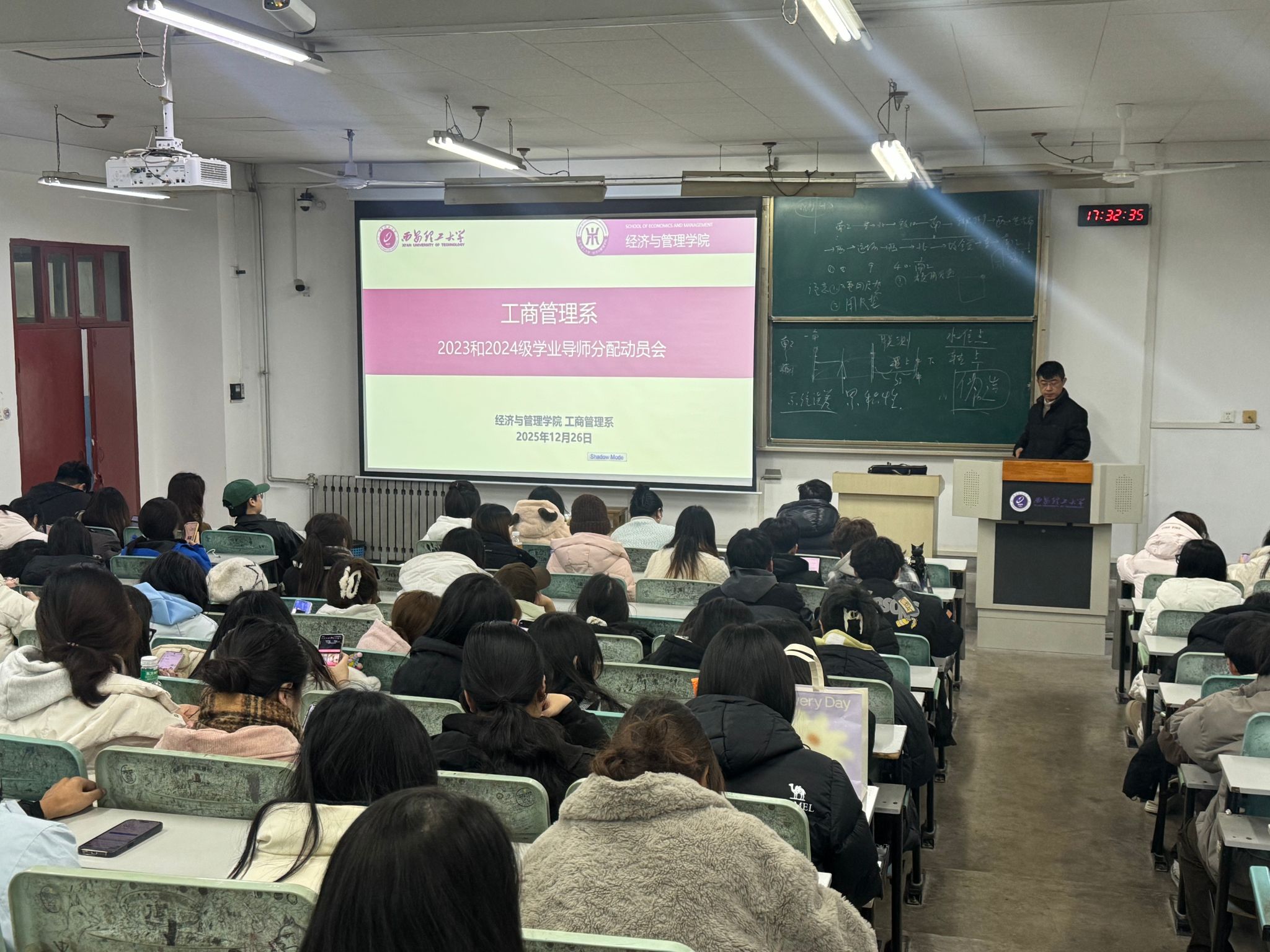 20251226日,bevictor伟德工商管理系在8-202召开2023级、2024级本科生学业导师分配动员会,标志着公司“跨界交融、强技厚德”培养改革方案在基层教学单位进入实质性落实阶段。动员会由系主任蒋楠主持,系副主任张之光详细解读了公司学业导师制的政策内涵与分配原则。