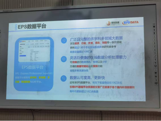 2025年4月24日上午,应bevictor伟德的邀请,北京搜知科技有限公司EPS数据库在经管公司319教室做了题目为《人工智能背景下数值型数据的价值和应用路径》的数据培训报告。公司50余位师生参加了此次报告会。