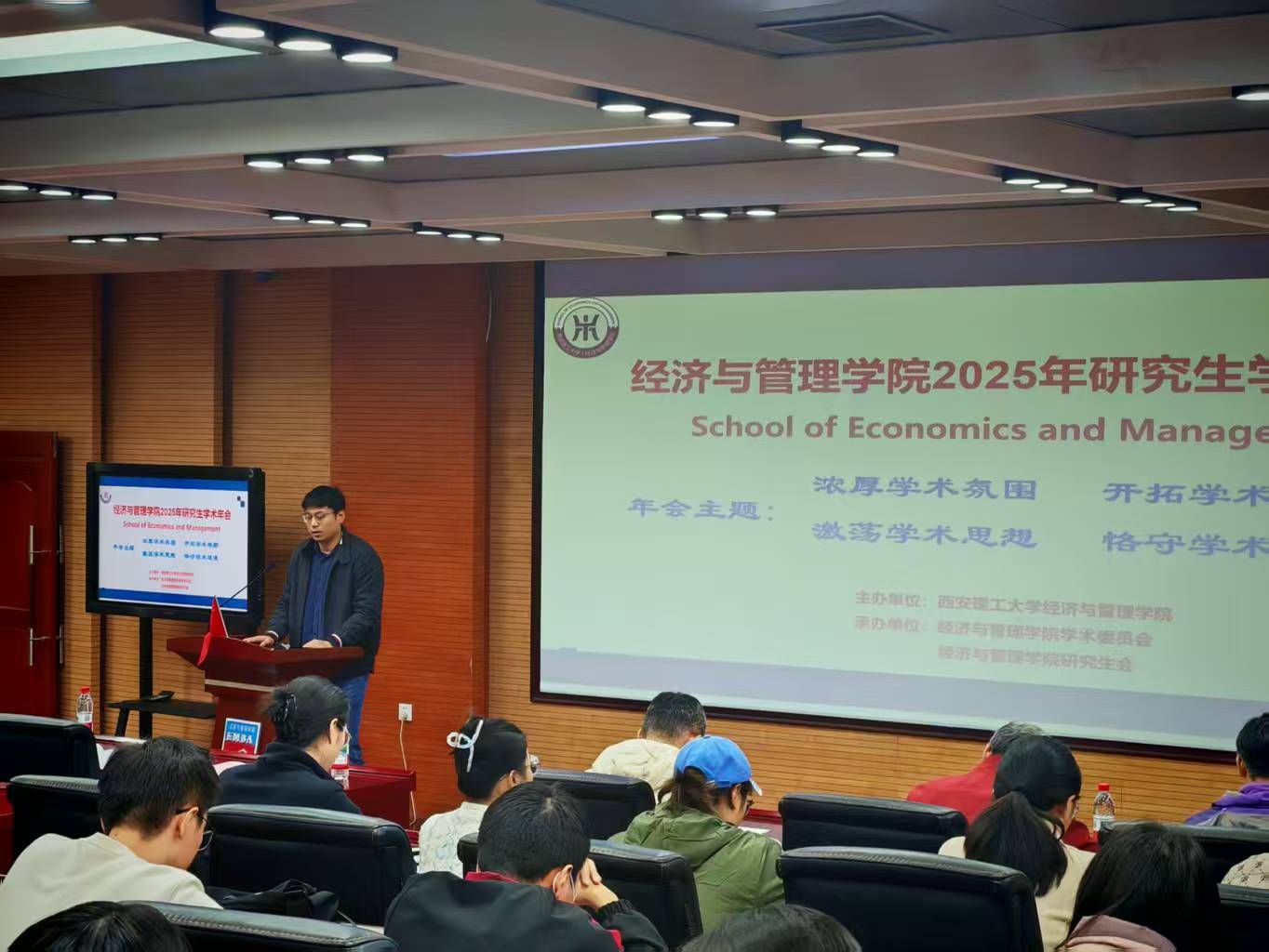 2025年11月7日下午,伟德官方网站2025年研究生学术年会——bevictor伟德分会开幕式在曲江校区教11楼EMBA报告厅召开。研究生院副经理田原晖、bevictor伟德副经理赵璟、工商管理学学科带头人扈文秀、应用经济学学科带头人薛伟贤,学术年会各组组长及公司各系主任出席了本次开幕式。西安交通大学江旭教授作为特邀嘉宾出席了本次开幕式。本次年会以“浓厚学术氛围、开拓学术视野、激荡学术思想、恪守学术道德”为主题,旨在激发研究生创新思维,提升学术研究素养。会议由赵璟主持。